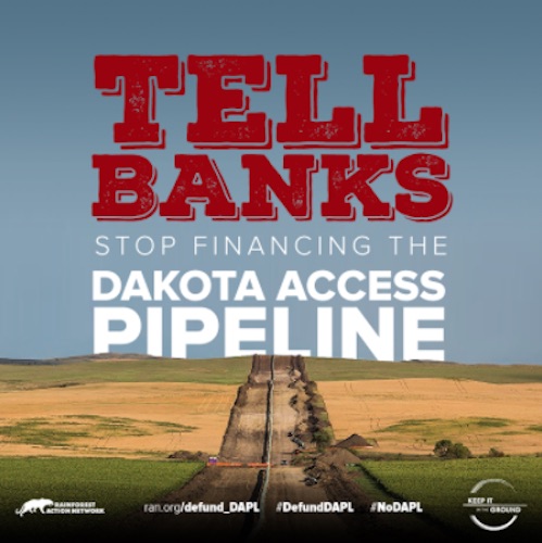 als 17 bancs que financien el 'Dakota Access Pipeline' per que deixin de finançar-lo, i retira els teus diners d'aquests bancs. Dels bancs de l'Estat espanyol el BBVA és un del bancs implicats en aquest projecte incendiari del clima.