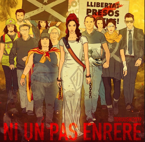 1.- Una "Junta Electoral" que no és cap organ judicial, ni és cap superior jeràrquic del President d'una autonomía ñola ordena truene una pancarta del balcón de la Generalitat que diu 'Llibertat presos politics i exiliats'.