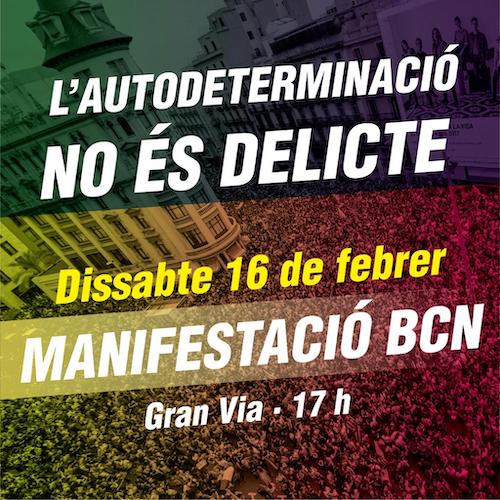 16/2/2019: Centenars de milers de persones defensen, a la Gran Via de Barcelona, el Dret a l'autodeterminació de Catalunya |