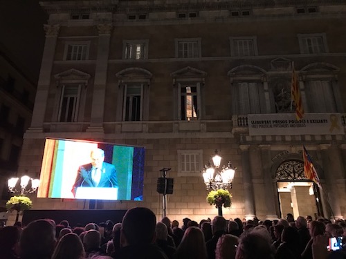 En un acte al Saló de Sant Jordi, al Palau de la Generalitat, i amb la Plaça de Sant Jaume plena, el MHP Carles Puigdemont va anunciar, per videoconferencia i al costat del conseller Toni Comin, el