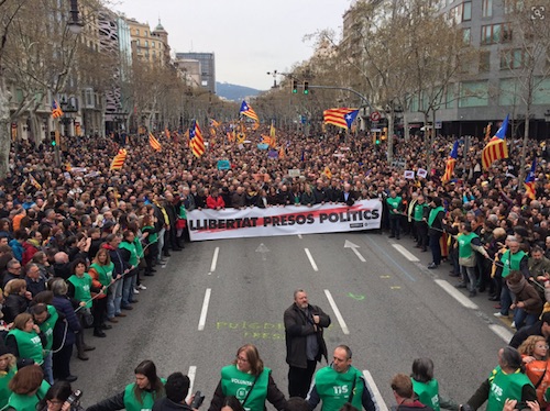 A conseqüència de l'empresonament dels consellers del govern Puigdemont que va ordenar l'inquisidor-jutge Llarena i de la retenció de Carles Puigdemont per part de la policia alemanya a conseqüència de l'ordre emesa també per l'inquisidor-jutge, milers i milers de persones han sortit el carrer arreu, demanant la llibertat dels presos i la investidura de Puigdemont.
