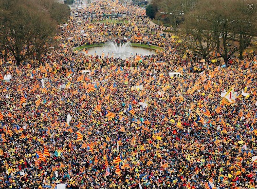 Mes de 45.000 persones, d'arreu de Catalunya, es manifesten pacíficament a Brussel·les