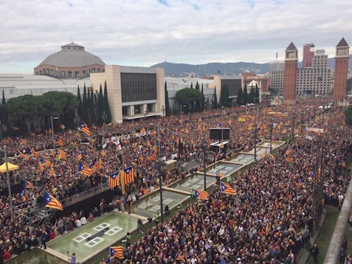 L'acte Per la Democràcia omple, de gom a gom, l'avinguda Maria Cristina de Barcelona