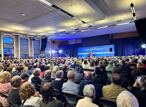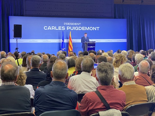 El President Puigdemont comnpareix a Elna i centenars de persones s'hi traslladen per escoltar-lo.