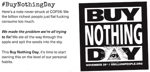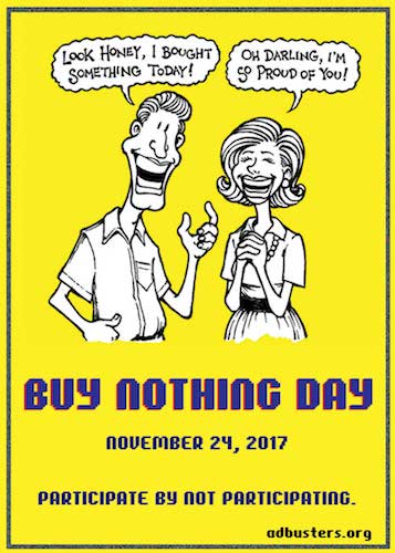Així que aquest dia de Buy Nothing, sortim i unim-nos als festers del Black Friday. . . i trencar el seu tràngol.