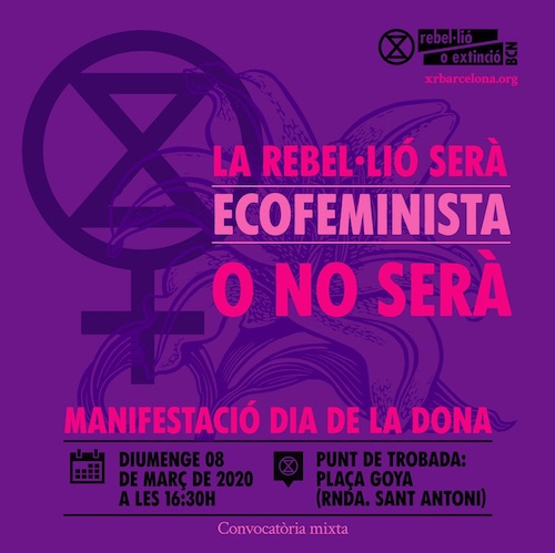 Punt de trobada: 17. 45h a les torres de Plaça Espanya amb pancarta EcoFeminista🌱🌻 🎉Us convidem a sumar-vos al bloc ecofeminista a la manifestació de la vaga feminista el 8 de març a Barcelona per dir clarament que ni la terra ni les dones som territori de conquesta. 🚫🌍🙅 💪Les lluites ecologistes i feministes confronten les mateixes estructures: patriarcals, capitalistes i colonialistes.☣️🛢️🚧. 📢⏳En aquest moment clau en què hem de sonar l'alarma sobre l'emergència climàtica en tots els àmbits, estarem allà per a declarar que el canvi climàtic és un abús més del patriarcat.♀️ ✊Totes les persones són benvingudes! Hi haurà cartells i pancartes per a qui vulgui!🚩 🌿🌾"La nostra lluita és per la vida"🌾