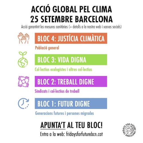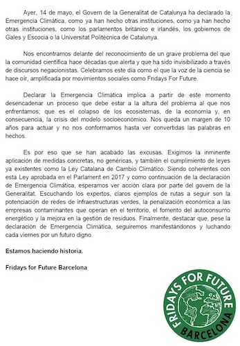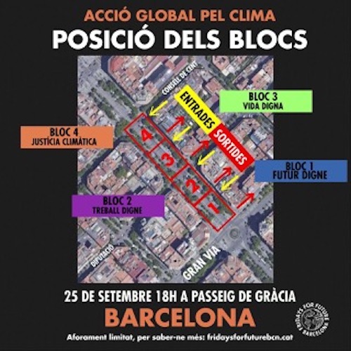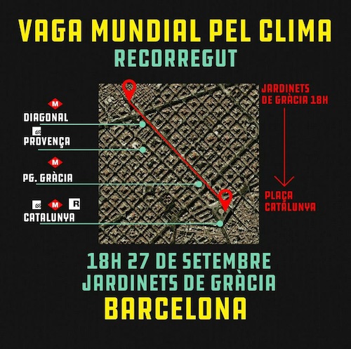 Milers de persones s'han manifestat, des de la Plaça de la Universitat fins a la Plaça de Sant Jaume, on s'ha demanat a l'Ajuntament de Barcelona i a la Generalitat de Catalunya que declarin una emergència climàtica.